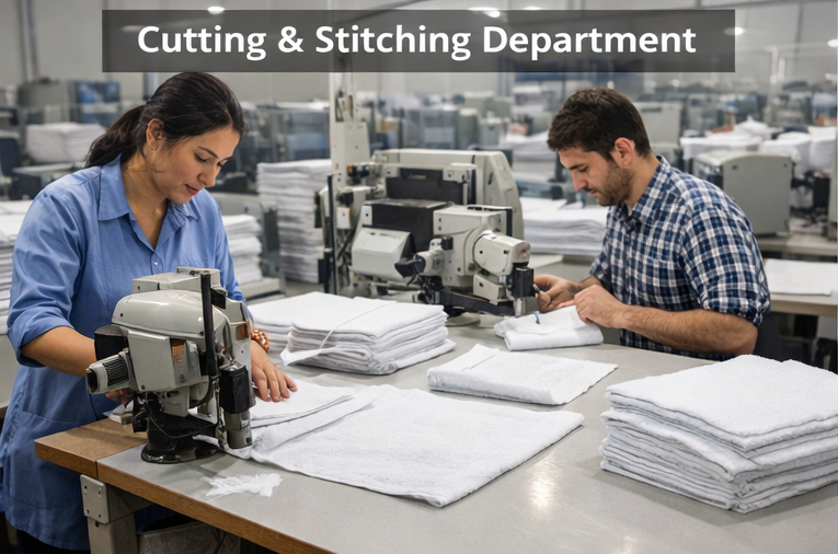 After , getting Finished Fabric is cut to required sizes and hemmed using reinforced stitching techniques.